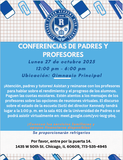 El primer trimestre finalizó el viernes 17 de octubre. ¡El año escolar está pasando muy rápido! Espero verlos en las reuniones de padres y maestros el lunes 27 de octubre.