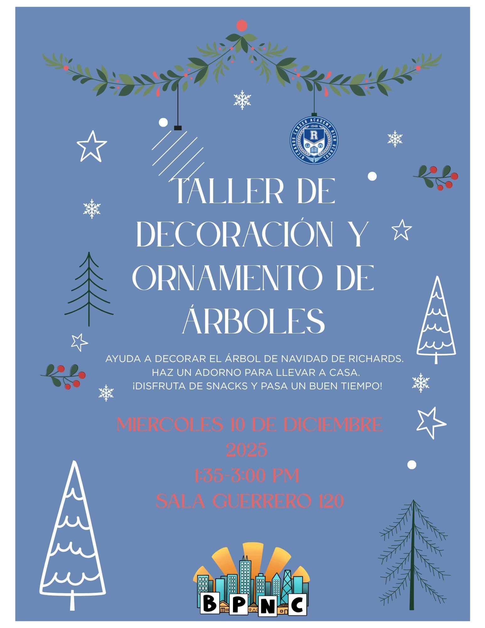 Se invita a los alumnos a asistir a un taller de decoración de árboles y elaboración de adornos después de clase el miércoles 10 de diciembre. Hay un límite de 25 alumnos que pueden participar.