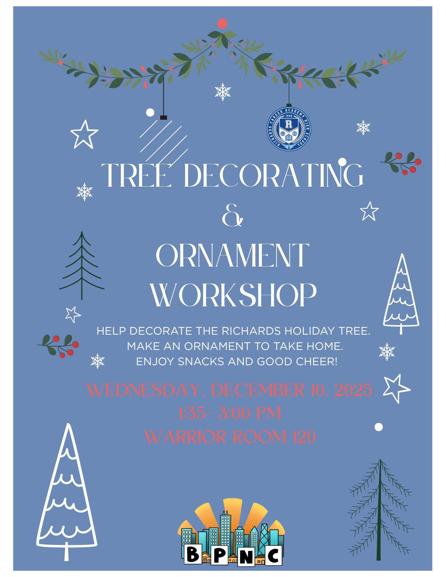 Students are invited to attend a tree decorating and ornament making workshop after school on Wednesday, December 10. There is a limit of 25 students who may participate.