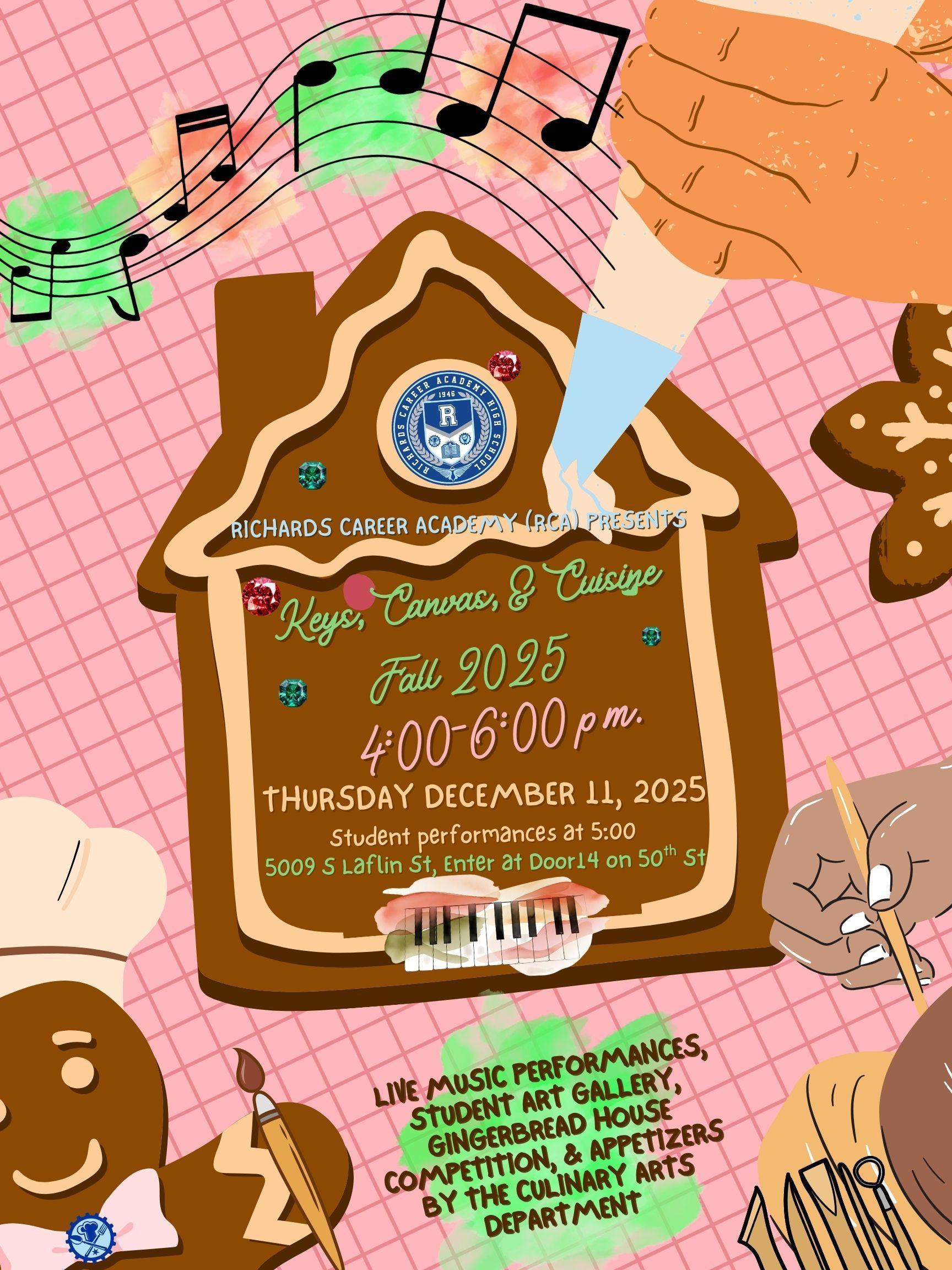 ¡Nuestra tradición semestral continúa! Todas las familias de RCA están invitadas a acompañarnos de 4:00 a 6:00 p. m. el jueves 11 de diciembre para otra gran edición de Claves, lienzos y cocina. Este es un evento excepcional que muestra el talento artístico de nuestros Guerreros. ¡Esperamos contar con su presencia!
