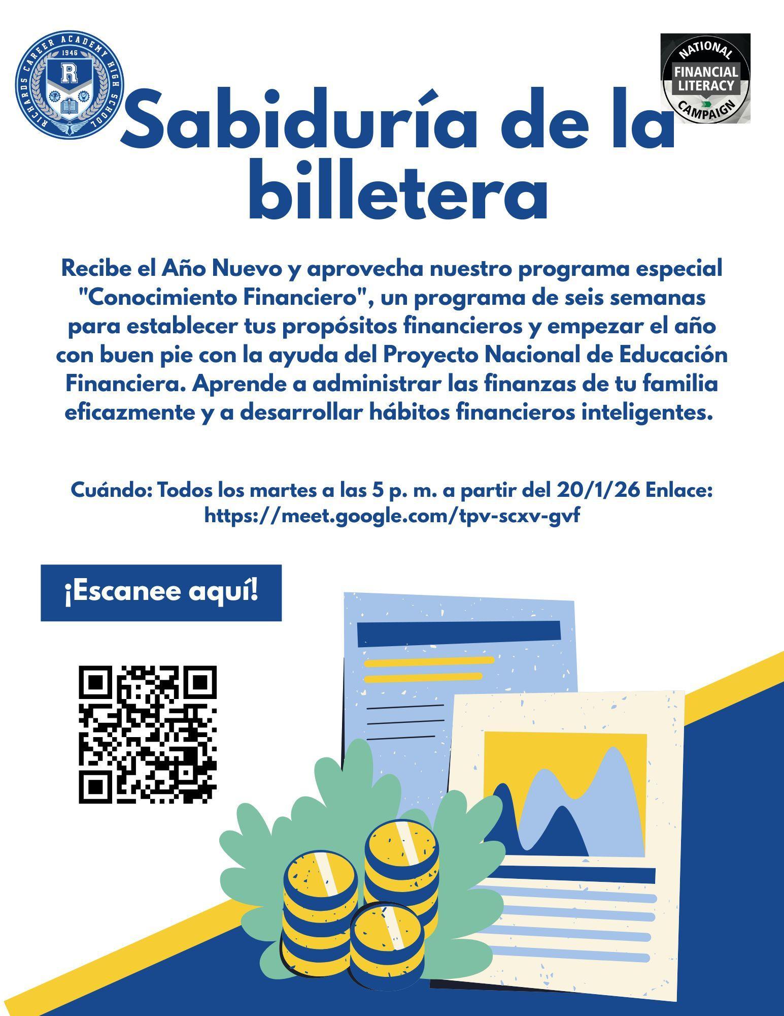 ¡Dé la bienvenida al Año Nuevo y aproveche nuestro programa especial «Wallet Wisdom» (Sabiduría financiera), de seis semanas de duración, para establecer sus propósitos financieros y empezar el año con buen pie con la ayuda del Proyecto Nacional de Educación Financiera! Aprenda a gestionar eficazmente las finanzas de su familia y a desarrollar hábitos financieros inteligentes. Este programa se impartirá en inglés y se celebrará virtualmente todos los martes a partir del 20 de enero a las 5 de la tarde.